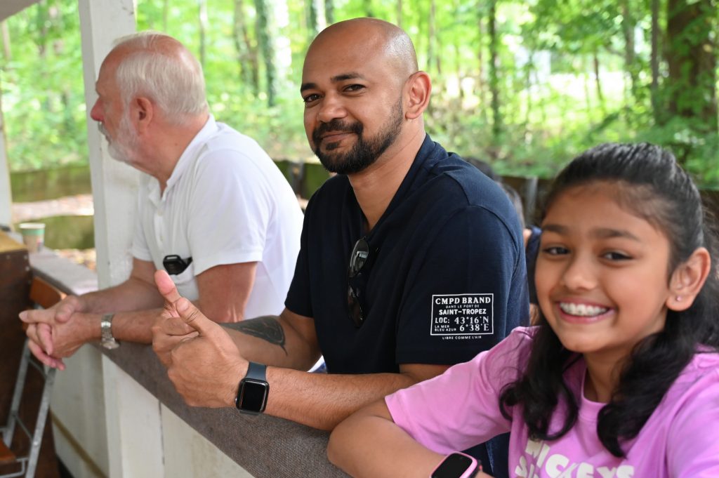 Arwed, Soodabeh und Becky genießen den Blick auf den Schießstand.