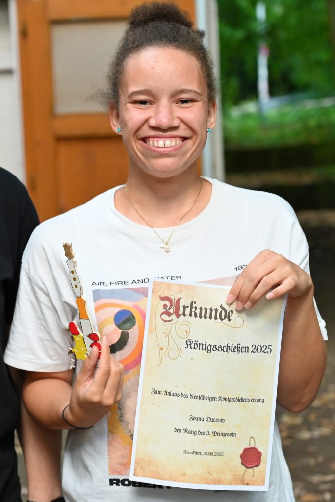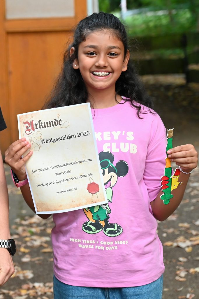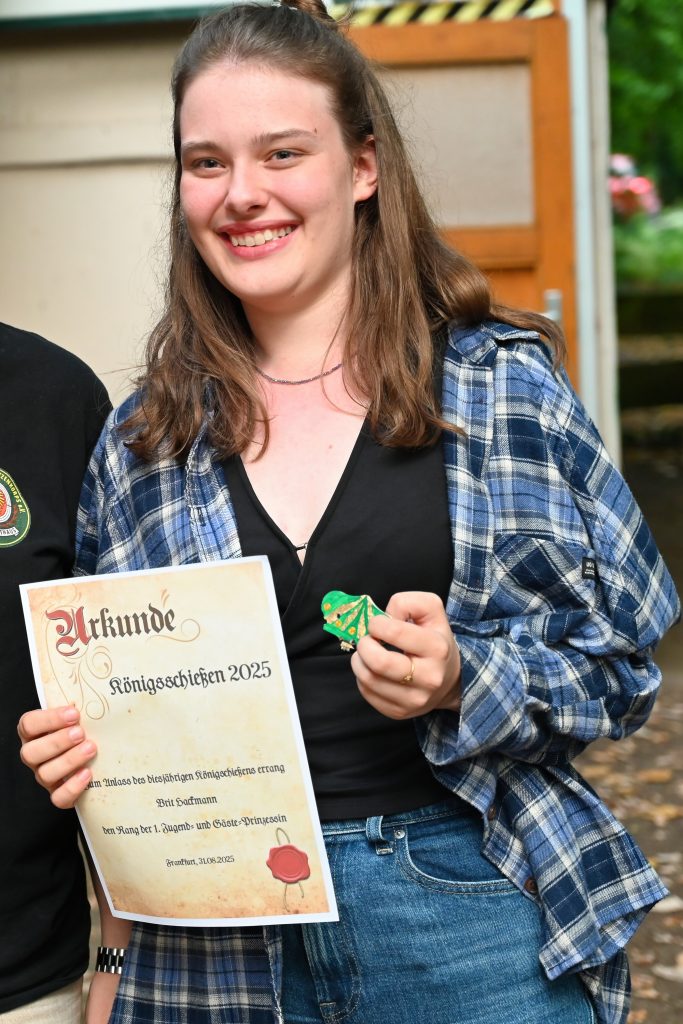 Timon Galahn kann mit einem geschickten Schuss den Apfel abtrennen, Manvi Sahu das Zepter. Sie dürfen sich fortan für ein Jahr Ritter und Prinzessin nennen.